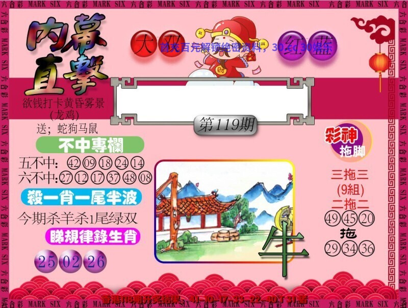 | 119期四肖 | 蛇羊牛兔 | 蛇49中 |